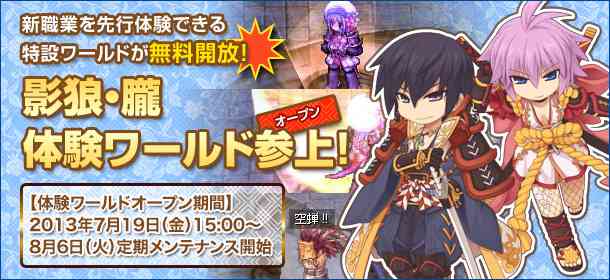 ファンタジーオンラインゲーム『ラグナロクオンライン』、待望の新職業「影狼」「朧」を先行体験できる特設ワールドが無料開放。2013年7月19日(金)に「影狼・朧 体験ワールド」がオープン。