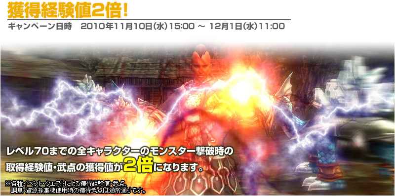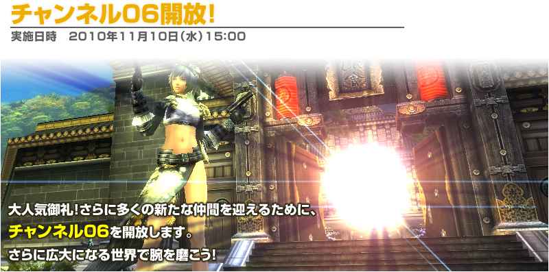 本キャンペーンは、レベル70までの間、取得経験値が2倍になるほか、さらに世界が広がる「チャンネル06開放」、オシャレでカッコイイ「SP衣装プレゼント」、全ユーザーがうれしい便利アイテム配布NPC「タンタン」の登場と、盛りだくさんの内容となっている。 |