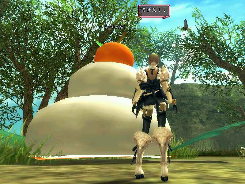 「かがみ餅」を倒すと、周囲にイベントアイテム「かがみ餅の欠片」が撒かれます。「かがみ餅の欠片」を、
