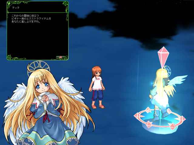 チュートリアルで出会うタイタニア族の少女「ティタ」、DEMの場合は「クォーク博士」に話しかけるともらえる、冒険を強力にサポートするエクストラアイテムと同等の効果を持つ便利な「ビギナーズアイテム」が