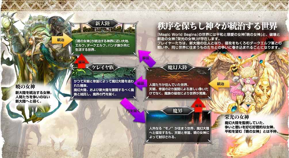秩序を保ちし神々が統治する世界「Magic World Begins」の世界には平和と慈愛の女神「暁の女神」と、
