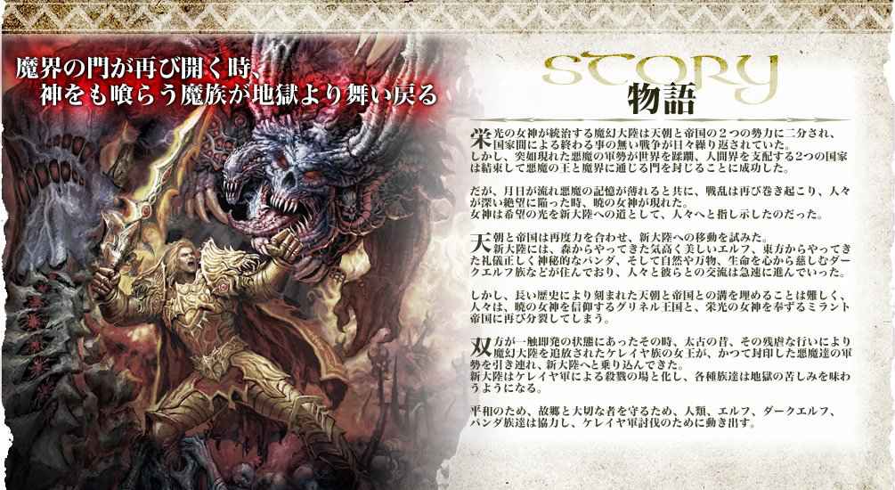 栄光の女神が統治する魔幻大陸は天朝と帝国の2つの勢力に二分され、