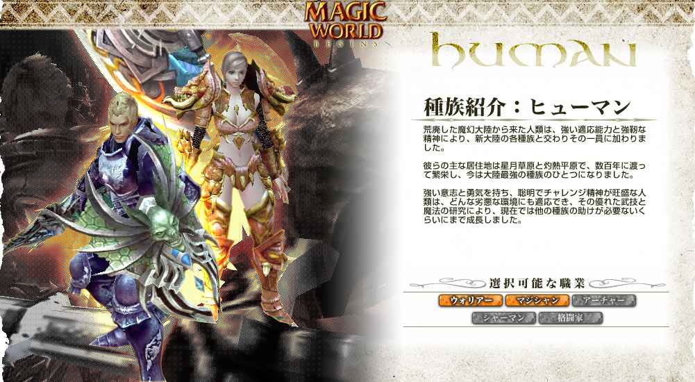 今夏公開予定のゴシックファンタジーMMORPG「Magic World Begins」、本日本作に登場する種族、職業情報を公開。