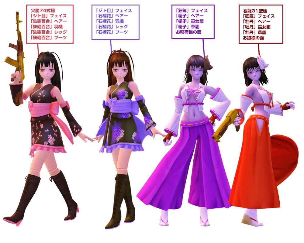 「放浪銃器少女」のキャラクターが着用しているアバターやアクセサリーが、