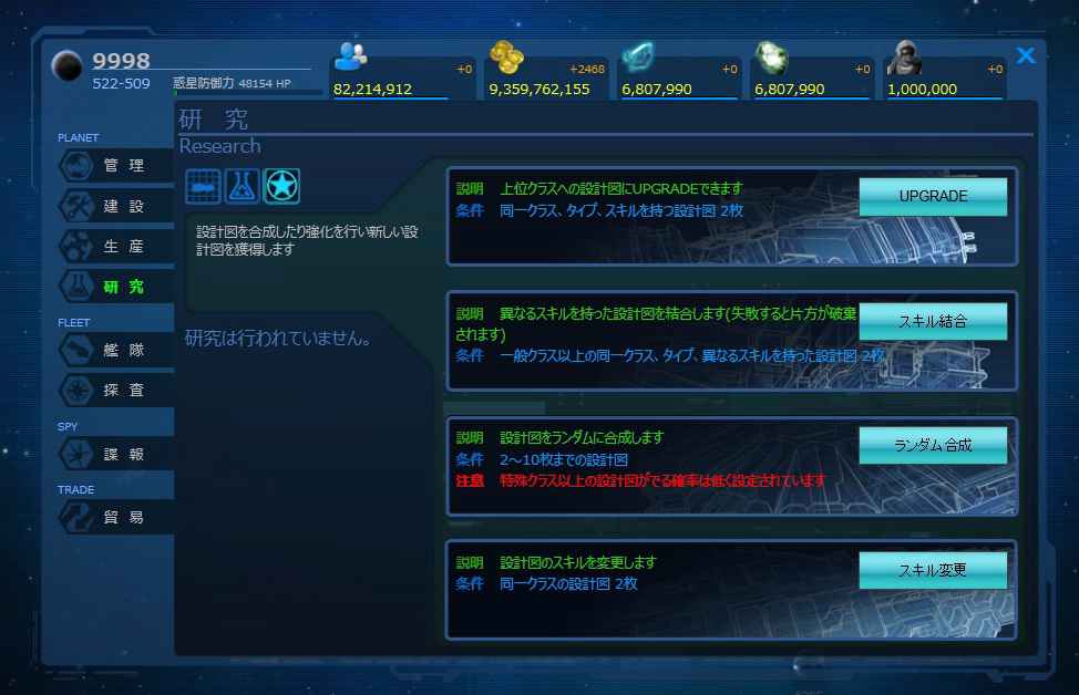 旗艦を生産するために必要な「設計図」をグレードアップできるシステムです。