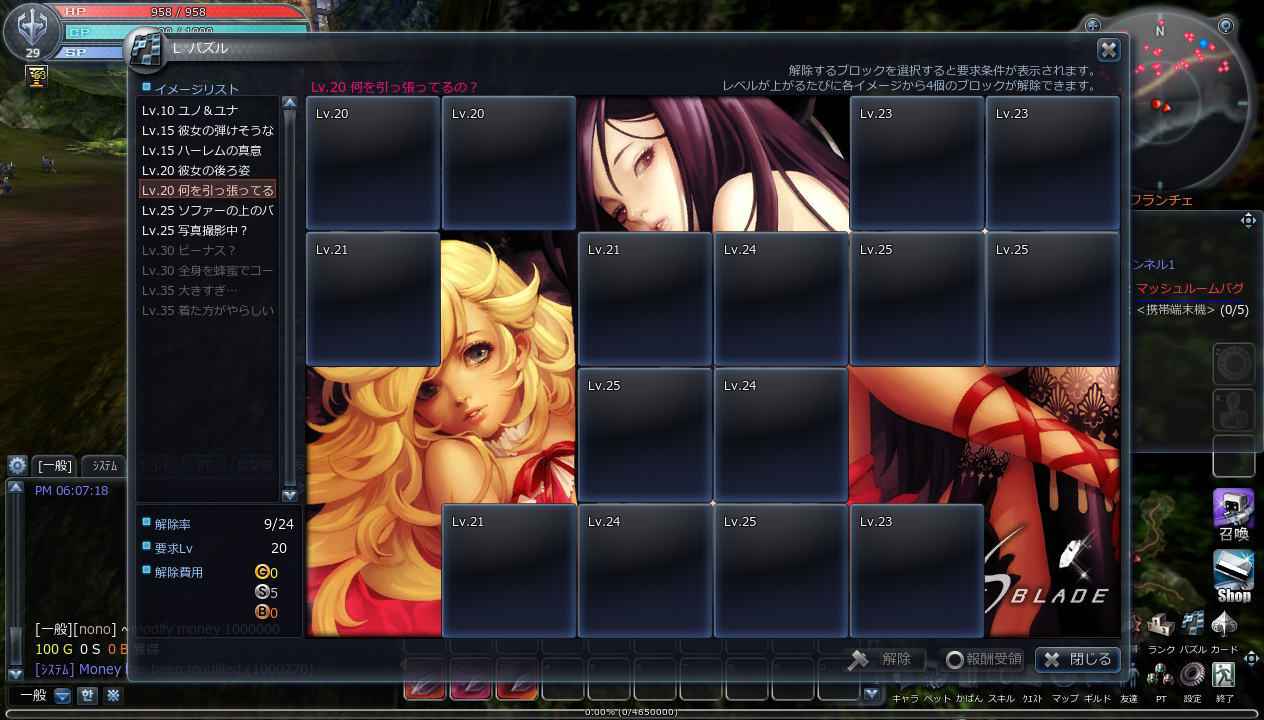 「パズル」は、レベル10から利用することが出来、指定された金額を支払うと、