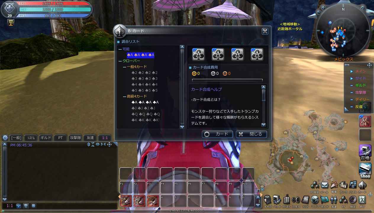 「カード合成」は、モンスター討伐などでドロップするトランプカードを調合して、