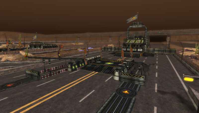 両陣営を結ぶ巨大な道路。
