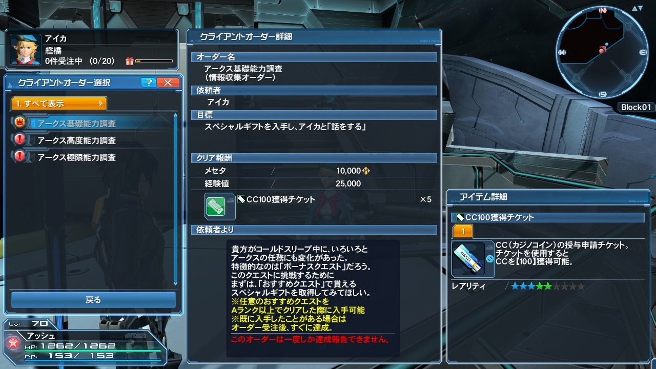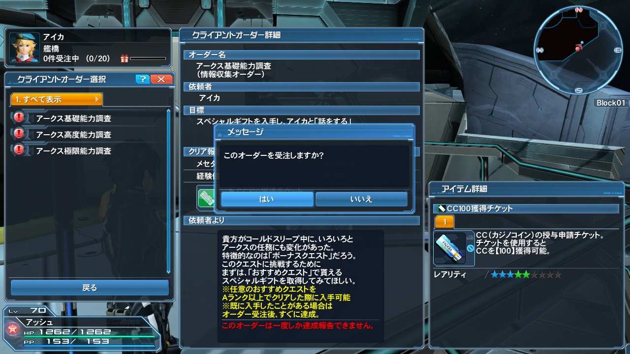 アイカが主人公たちのアークスシップに滞在することになった。