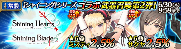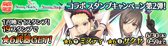 コラボ第2弾では、『シャイニング・ハーツ』、『シャイニング・ブレイド』から6キャラクターが新