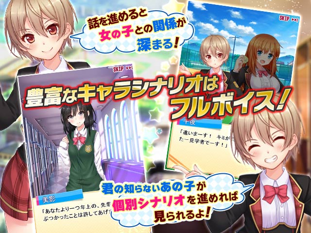 カードやイベント画像の作成には、有名イラストレーターも参加しており、クオリティの高いイラストが同ゲームの魅力だ。また、登場する女子生徒(ヒロイン)たちは豪華声優陣を用いたフルボイスで、ゲームを進めて女の子と仲良くなるにつれ、より大胆なイラストや台詞が見聞きできるようになる。