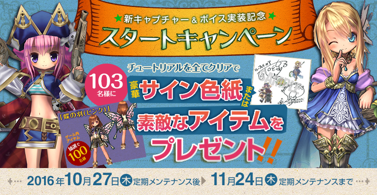 期間中にECOを初めてプレイし、「チュートリアル」イベントを全てクリアした方の中から抽選で合計103名様に素敵なプレゼントが当たるチャンス!