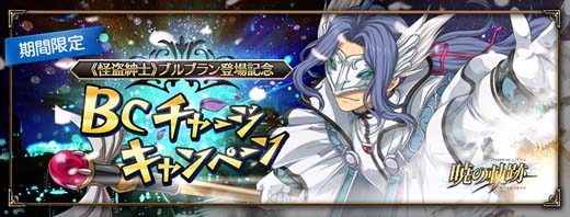 2016年11月30日(木)定期メンテナンス後から、新キャラクター「《怪盗紳士》ブルブラン」の実装を記念した「BC チャージキャンペーン」を実施いたします。
