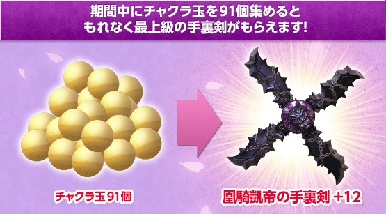 期間中、ログイン1時間毎に配布される「チャクラ玉」を一定数集