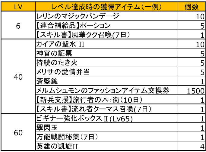 ※上記以外にも様々なレベル帯でアイテムをプレゼントいたします。